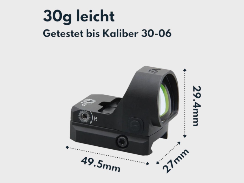 - Footprint: MOJ (Kompatibel zu Trijicon RMR/SRO, Holosun 407C/507C/508T, Riton und Axion)